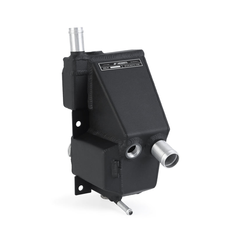 The 2011+ Ford 6.7L Super Duty is a workhorse of a truck and the go-to pickup for many of the hardest working people on Earth. The 6.7L Powerstroke that propels the 2011+ F-250 and F-350 is robust and reliable, but it's not without its weaknesses. Like any large-displacement turbodiesel, the 6.7L generates an immense amount of heat and strain on the charge air cooling system. Luckily, the engineers at Ford fitted the Super Duty with a robust secondary cooling system that's dedicated to keeping fuel and air temps in check. While the secondary radiator and air-to-water intercooler are cut from the same cloth as the heavy-duty 6.7L, the degas tank that supplies them both with coolant is not quite as durable.Anybody who has worked on an aging cooling system knows that anything plastic tends to crack and shatter with time. The 6.7L Powerstroke's secondary cooling system degas tank is no exception, which is why Mishimoto has designed an all-aluminum replacement.Our secondary degas tank for the 2011+ Ford 6.7L Powerstroke ditches the plastic construction in favor of aircraft-grade aluminum that's as durable and hard-wearing as the rest of your Super Duty. Like the stock tank, our degas tank includes internal baffles to keep the coolant around the outlet and prevent aeration, no matter how rough the road gets. The Mishimoto secondary degas tank also features a 15.65-percent greater coolant capacity than the stock tank to add even more cooling potential to your 6.7L's secondary cooling system. The side of this degas tank also features a sight glass to make checking the coolant level a one-step operation.This all-aluminum secondary degas tank for the 2011+ Ford 6.7L Powerstroke is available in a natural aluminum finish or micro-wrinkle black powder coat and is built to last. We're so confident in our degas tank that we've backed it with our Mishimoto Lifetime Warranty for a lifetime of worry-free cooling.