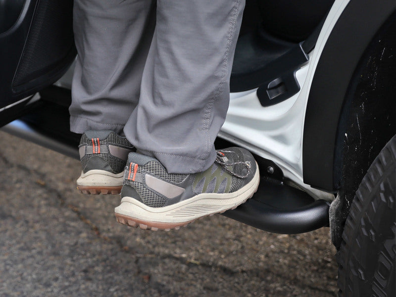 Introducing the Subaru Outback Terra Guard Slider step, the ultimate body protection for your Subaru. Crafted from heavy-gauge steel, this rugged upgrade replaces the factory lower plastic cladding, ensuring ultimate protection when navigating rocky terrains. With its innovative design, the bottom wraps around the pinch seam for added strength, while maintaining no loss of ground clearance. The entire pinch seam rail can even be used as a jacking point, providing versatility on your off-road adventures. The slider also offers a safe and secure platform to access your rooftop storage and gear. Upgrade your Subaru Outback and conquer any terrain with confidence. Slider is crafted from 1/8 inch steel plate that forms to the rocker panel, wrapping around the pinch rail with 1/8 inch wall tubing outer profile for ultimate protection when sliding on or pivoting around obstacles. Our Terra Guard Trail Slider matches the factory rocker panel profile increasing over all ground clearance. Entire pinch seam rail can be used as a jacking point. Our large step pad area provides a secure platform to gain access to roof top storage and gear. Replaces factory lower plastic cladding, utilizing original mounting points with no drilling or cutting required. Slotted drain holes in pinch seam rail allow for water drainage. Finished in a textured black powder coating not only ensures long-lasting durability but also adds a rugged look to your vehicle's appearance.